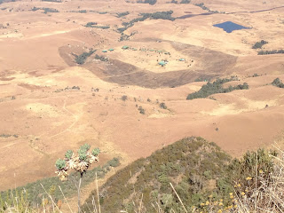 The climb down was not pretty. Steep, rocky, slippery, narrow, we moved slowly and folcussed only on the step ahead. This was too bad because it was a fantastic view, given that we were moving down an almost vertical hill, inching along steep zigzags cut into its face. A group of elands eyed us cautiously, moving when they felt we were too close, but always in a forward direction so they got more and more skittish as we came close. Finally they either got smart enough or scared enough to move uphill and we passed their alarmed eyes.